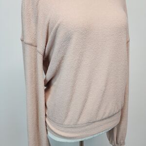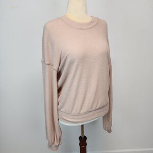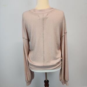 FP Beach TGIF Pullover Sweatshirt Size S Almond Oversized Slouchy Neutral Casual