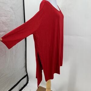 FP Beach Tunic Top Women XS Extra Small Red Long Sleeve Double Slit Free People