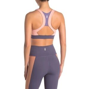 Free People Colorblock Sports Bra. High-Neck. Breathable Cutout at Back. Compressive Fit. Elastic Bottom Band. Racerback Straps. Lined Bust.Keyhole Open Back Strappy Details. Pastel Casual Dusty Mauve Pink, Earthy Terracotta Blush, and Purple. Cute & Comfy. Stretchy. NWT / New With Tags. Great Condition. No Stains or Rips.