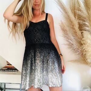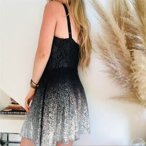 FP FREE PEOPLE Black Silver Ombre Metallic Brocade Knit Tank Top Mini Dress L