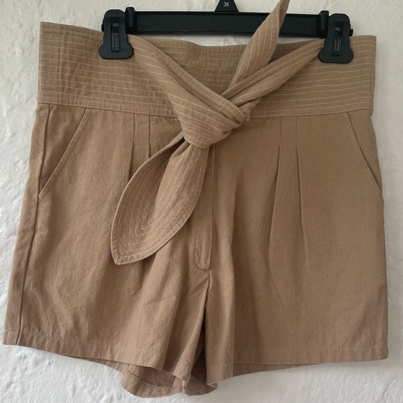 FP Free People tan One Viola slouchy tie front pleated shorts with pockets; 4