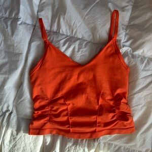~Fitted, rouched, bright orange tank
