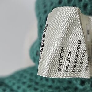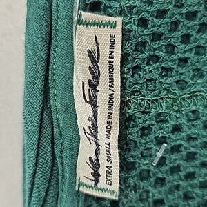 FP Green Open Knit Net Mesh Crew Neck Short Sleeve 100% Cotton T-shirt
