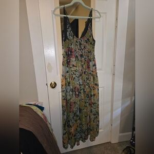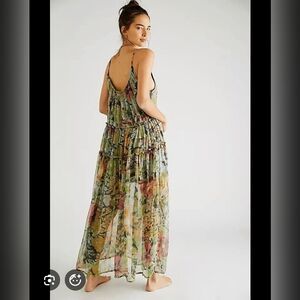 EUC Free People Juliana maxi dress, size small but can fit medium. Bought on another platform, but I don't like how it fits me. It seems to have been gently worn and there are no flaws that I can see. It has pockets and adjustable straps. Very light chiffon fabric and is lined to mid-thigh.