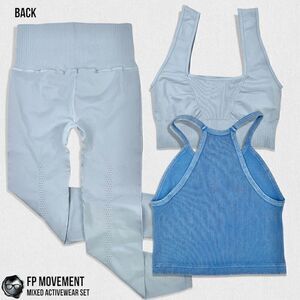 FP Movement Activewear Set: Good Karma Square Neck Bra + Leggings + HR Long Tank in Cool Blues