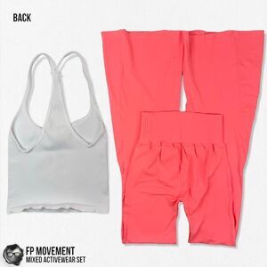 FP Movement Activewear Set: Sweetheart Crop Tank + Good Karma Flare Leggings in Neon Coral