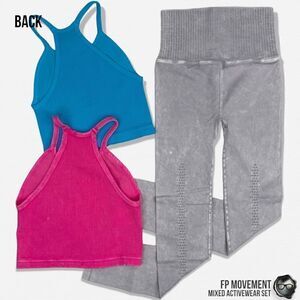 FP Movement Activewear Set: 2 Happiness Runs Crop Tanks + Good Karma High-Rise Leggings Blue, Pink, Grey XS/S