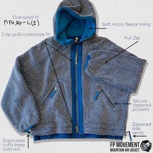 FP Movement Mountain Air Fleece Full Zip Hood Jacket Blue Oversized Fits XS - M