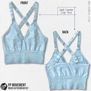 Free People Movement Workout Set: Good Karma V Neck Crop Bra + Bike shorts + Happiness Runs Crop