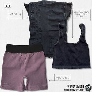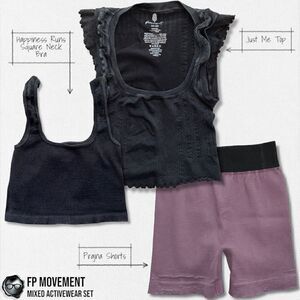 FP Movement Activewear Set: Happiness Runs Square Neck Bra + Prajna Shorts + Just Me Top