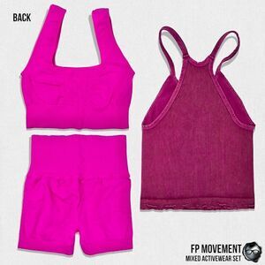 Free People Movement Good Karma Bra + Running Shorts + Ribbed Tank In Barbiecore Hues