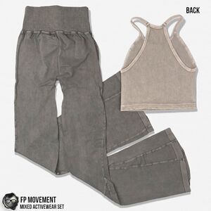 FP Movement Activewear Set: Happiness Runs Crop Tank + Good Karma Flare Leggings Taupe