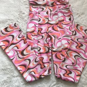 Part of an exclusive collaboration between FP Movement and Onzie, this forever-flattering, multi-colored yoga set features a one-shoulder bra in a sleek silhouette and retro-inspired pants in a high-rise with a slit-adorned, kick flare leg.