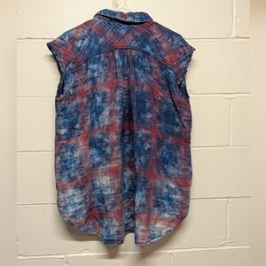 FP (Medium) Dip Die Plaid Cut Off Sleeveless Button Down Shirt *4th of July