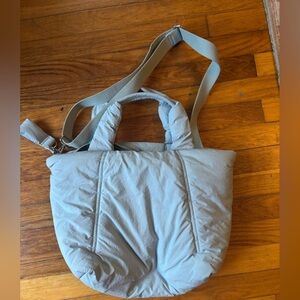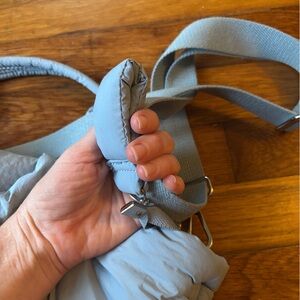 Used only a month. Only stain is INSIDE the bag, see 2nd to last photo. Can’t be seen when worn. Fits laptop. Super cute. Easily cleaned.