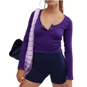 So sleek and versatile, this top features a smooth. soft fabrication and Henley silhouette with a peaky back cutout, deep scoop neckline, and flattering underbust stitching.