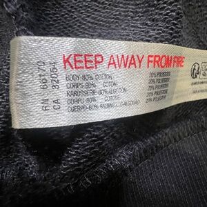 Cotton blend with logo zipper, collared, exaggerated cuffs with thumb holes, logo along interior and on back