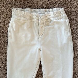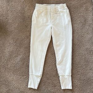 Worn only a few times and mostly in the house lol. Like new condition!! These are great and nice thick material! No rips stains or flaws. Color is ivory, is white in real life