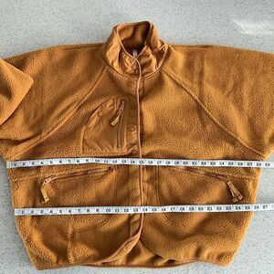 Tags slouchy, fuzzy, fleece, warm, snap, elastic cuffs