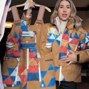 Free People CARE FP On The Ascend Printed PrimaLoft Bib Ski Pants Overalls - Delta Geo - Small