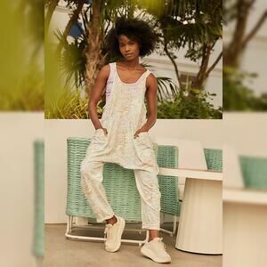 One piece jumpsuit. Soft and comfortable! Features 2 front pockets and a back zipper pocket. FP Movement Buti logo on left pocket and on zipper pull. Slouchy fit.