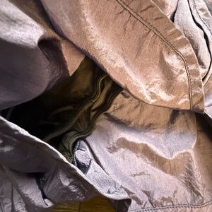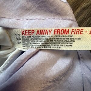100% Nylon, machine washable. One lavender, one plum purple