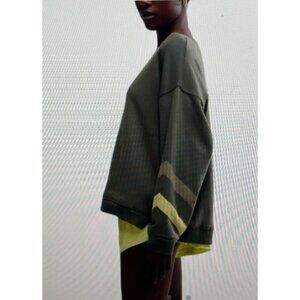 FP Movement Green Sweatshirt With Striped Sleeves & Graphic Design Size M