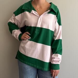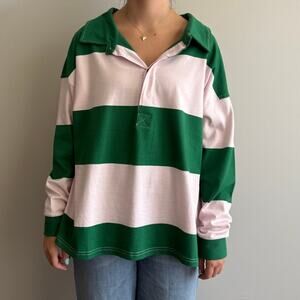FP Movement Green and Pink Striped Oversized Polo Shirt