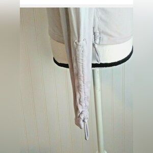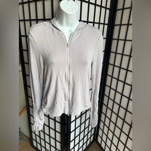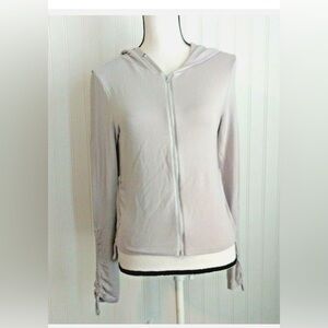 FP Movement Hoodie Women's Sz M Gray Stretchy Soft Shirred Sleeves Rayon Blend