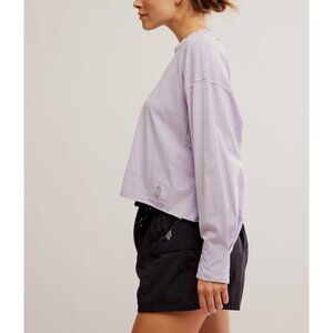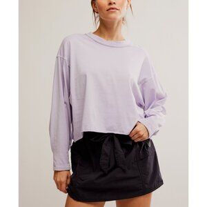 Warm up or cool down in this essential long sleeve, featured in a boxy silhouette and slightly cropped fit with a classic crew neckline and raw edged trim.