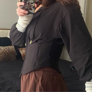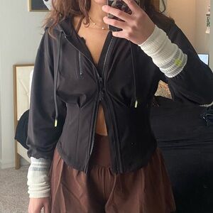 Free people movement zip up jacket with hood. Size small. Worn twice. Features a nice fitted look that snatches the waist