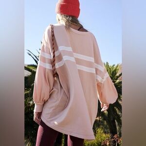 So sporty in a slouchy silhouette, this long-sleeve is featured in an oversized fit and classic pullover style with ribbed trim and striped detailing.