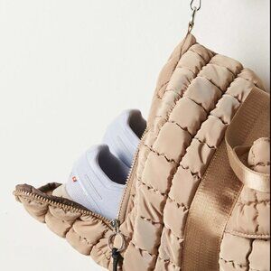 Taking the timeless duffle to the next level, this so cool version is featured in a puffer quilted fabrication with shoe pocket, suitcase strap, and plenty of pockets throughout for added functionality.