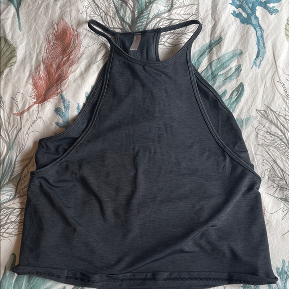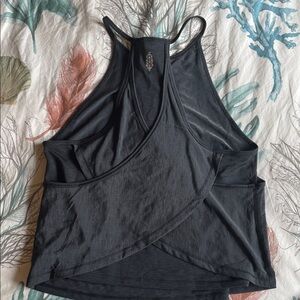 Stylish dark gray double layer racerback tank top. Perfect for casual wear, workouts.