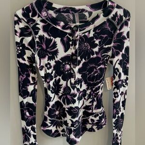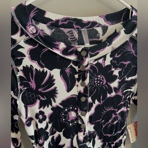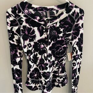NWT Free People Movement Women’s Floral Rally Ribbed Printed Layer Henley Top. Cotton, Elastane, Snap Button Neck. Brand New, No flaws. See Photos For Approx. Measurements. Size XS