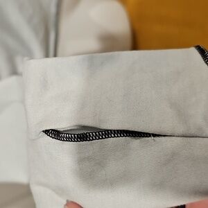 Features: Soft, smooth fabrication; thumb holes; seam stitching details at shoulder and body; ruching at side seams