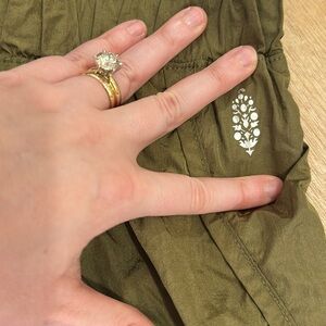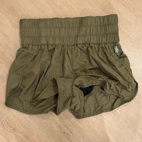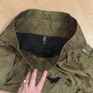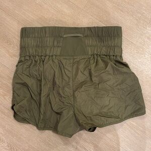 Like brand new, short with high waist. Perfect for running as fabric is like a windbreaker. Olive green color