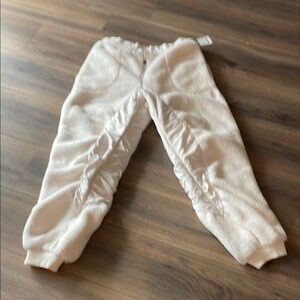 Cozy up in these so cool pants featured in a timeless jogger-inspired style and sherpa fabrication with contrast piecing at center for added dimension.