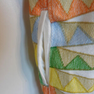 Color: White with multicolor embroidered geometric pattern