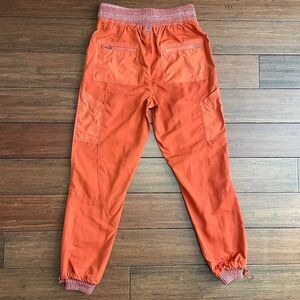 Trek-ready and designed for every adventure, these high-rise pants feature a wide woven waistband and zippered pockets allover with cinched bottom cuffs. High-rise, ankle-length. Lightweight technical fabrication, woven trim at waistband and bottom of legs, zip-front closure, side pockets, zippered pockets at legs and back, cinched bottom cuffs, slip pockets.