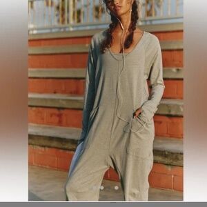 FP Movement by FP Hot Shot Long Sleeve Hooded Onesie in Heather Gray sz XS
