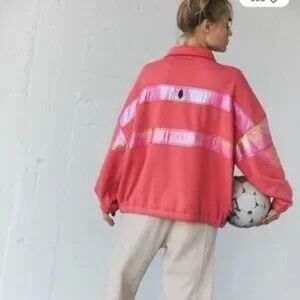FP Movement by Free People Away We Go Half Zip Pink/Iridescent, Sz L NWT