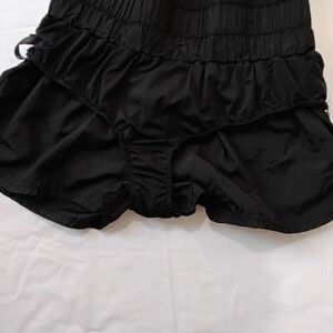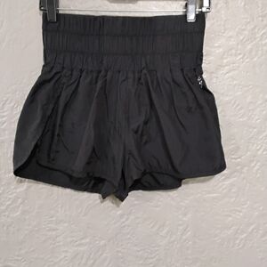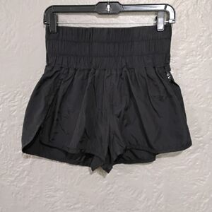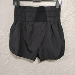These black high-waisted shorts from Atmosphere feature a wide, elastic smocked waistband for a comfortable fit. Crafted from a lightweight fabric, they offer a flowy silhouette with a subtle sheen, perfect for a stylish and relaxed look.
