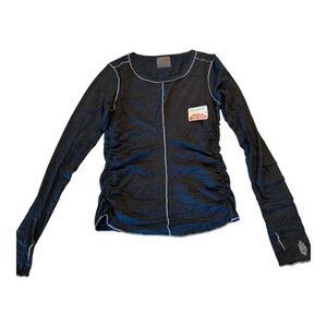 Sleek black long sleeve top. Perfect for active wear. Comfortable and stylish.