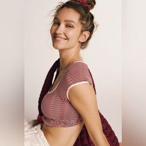 FP Movement by Free People Striped Short Sleeve Tee - Red and White