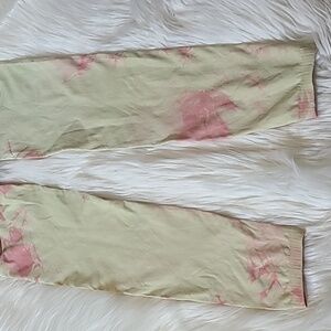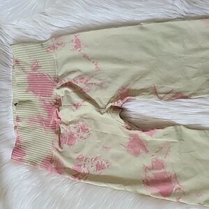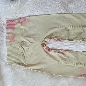 Stylish tie-dye leggings by FP Movement. Features a blend of pink and cream colors. Perfect for yoga or casual wear.