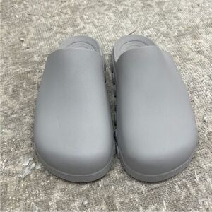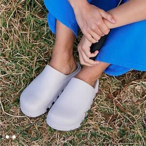 Features: Slip-on style, backless design, clog construction, PVC uppers, round toe, lugged sole