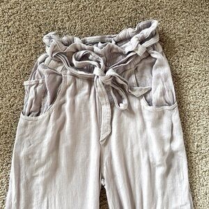 What are the measurements lying flat for the waist and where the front pockets meet the side seams? Is the material super soft or is it like linen? Thanks!