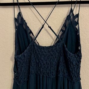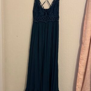 FP One Adella Maxi Slip Dress Size Medium Teal Jewel Turquoise Lace Sheer Flowy