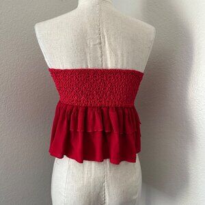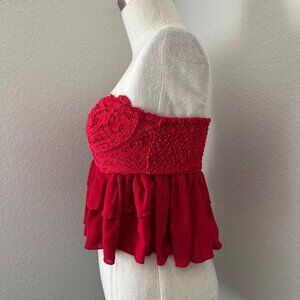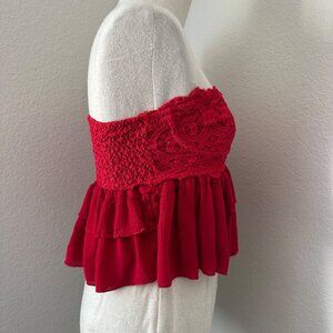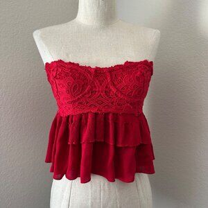 FP One Adella Red Strapless Lace Corset Peplum Tank Top Smocked Boho Sz S
